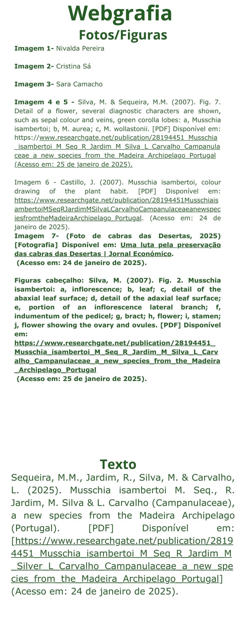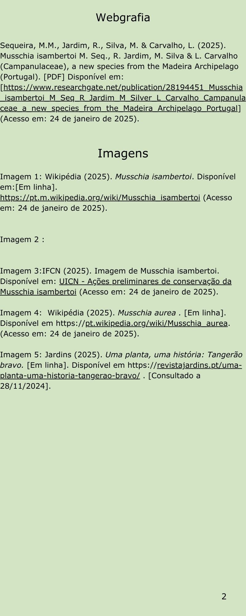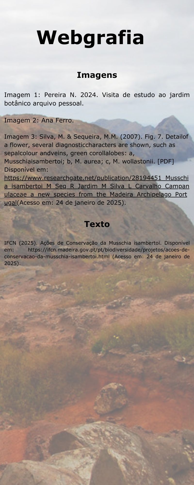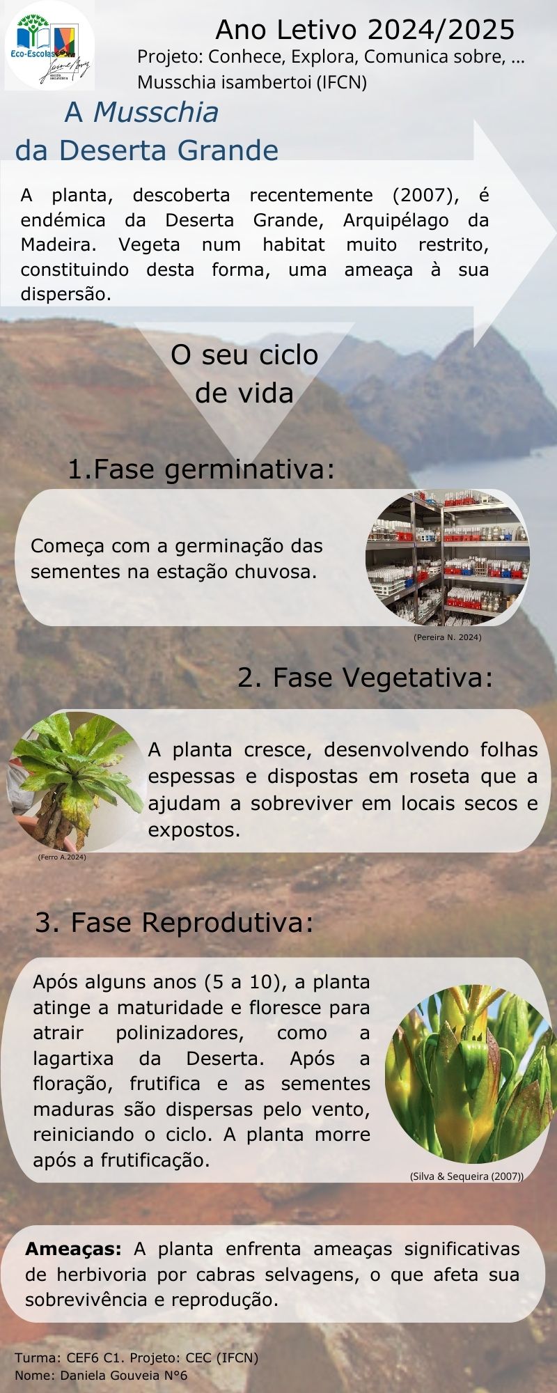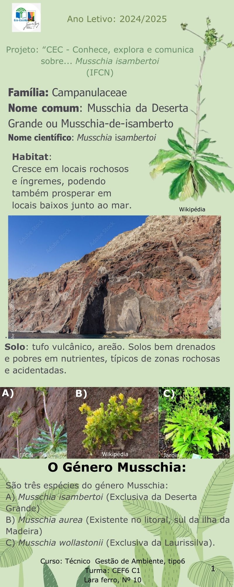 No ano escolar 2024/25 foi desenvolvido um projeto de intervenção educativa designado CEC - “Conhece, explora e comunica sobre… Musschia isambertoi” com alunos da turma CEF6 C1 da Escola Secundária Jaime Moniz.