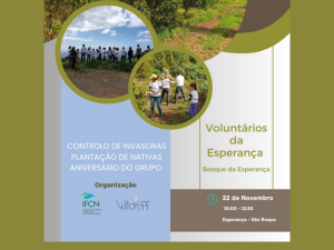Esta atividade, inserida nas comemorações do primeiro aniversário dos Voluntários da Esperança, irá contribuir para a proteção do património natural, com uma ação de restauro da natureza através do controlo de plantas invasoras e plantação de espécies nativas.
