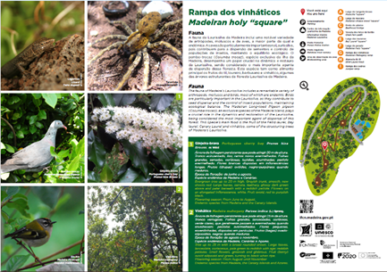 Criação de placas informativas, em português e inglês alusivas à Laurissilva da Madeira, colocadas numa área do Jardim Botânico de Coimbra, numa área onde existem exemplares de flora associados à Laurissilva, designando-se de Jardineta da Laurissilva.